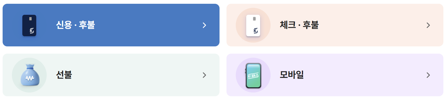 신용카드, 체크카드 중 선택하여 K패스 연계 교통카드 발급 신청