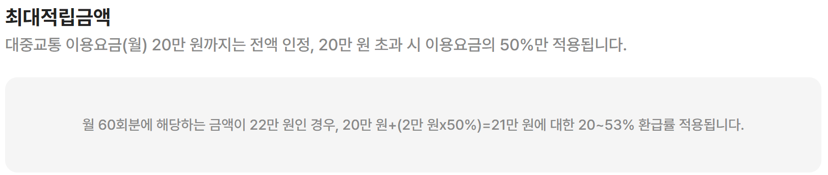 월 15회 이상 대중교통 이용으로 최대 혜택 확보