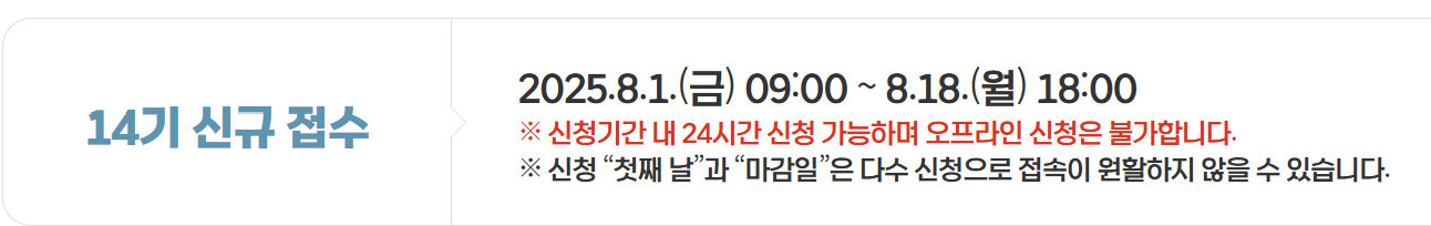- 신청 시작일에 바로 접수할 것 (조기 마감 우려)