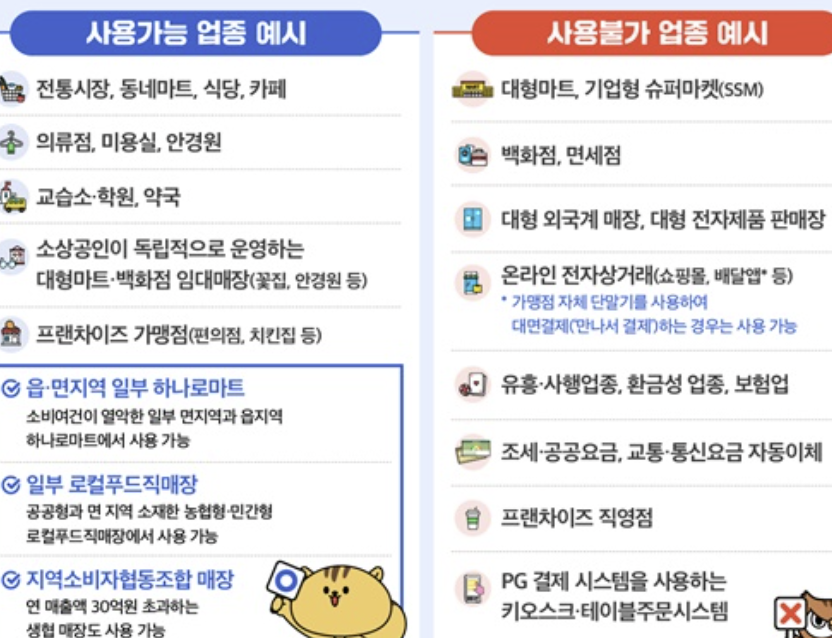 -> 즉, 소상공인 매장과 지역 내 가맹점에서만 사용 가능하므로, 사용 전에 꼭 확인해야 합니다.