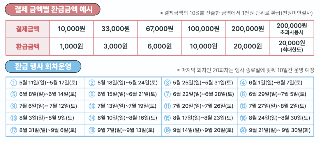 매주 누적 1만 원 이상 사용 시 10% 환급