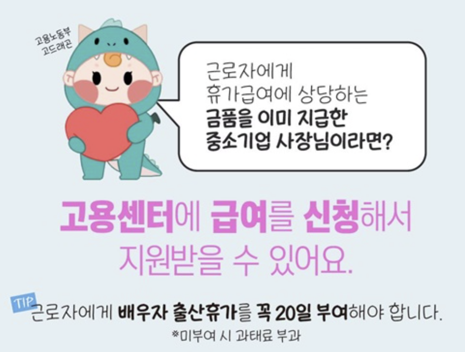필요서류(예상): 급여 신청서, 임금대장, 출산 증빙서류 등