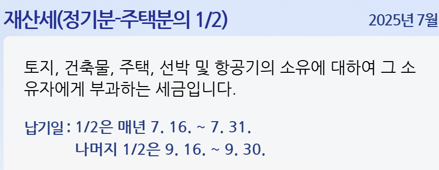 2025년 7월, 9월은 재산세 납부의 달입니다.