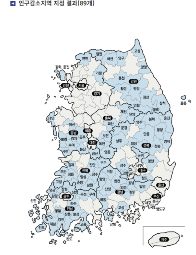 전국 인구소멸지역(인구감소지역) 89개 시/군 목록