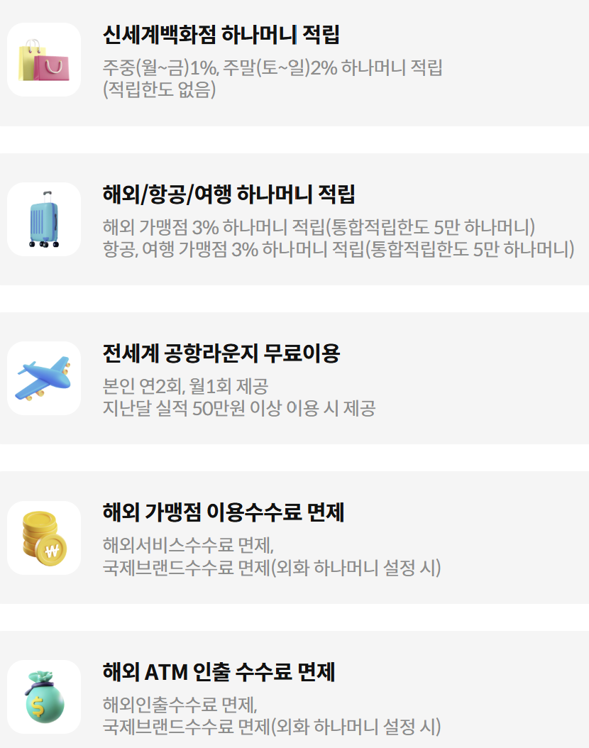 📌 공항 라운지 혜택과 실적 제한이 적은 구성은, 여행이 잦은 직장인과 자유여행객 사이에서 꾸준한 수요를 유지하게 만드는 요인입니다.