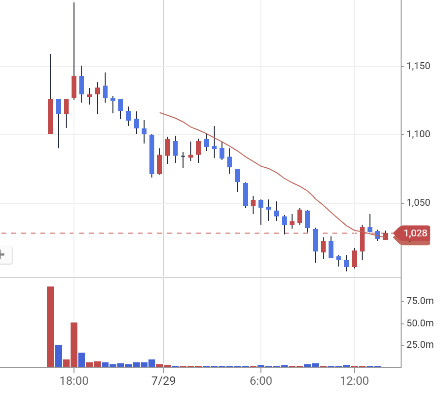 그러나 단기 급등 이후에는 일정 부분 조정이 불가피할 수 있으므로, 1,050원~1,070원 지지선 확인 후 분할매수 접근이 유리합니다.