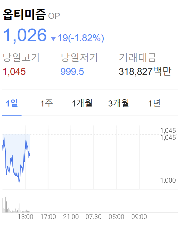 현재 옵티미즘(OP)은 1,026.84 KRW 수준으로 거래되고 있으며, 업비트 상장으로 인해 추가 상승 기대감이 형성되고 있습니다.